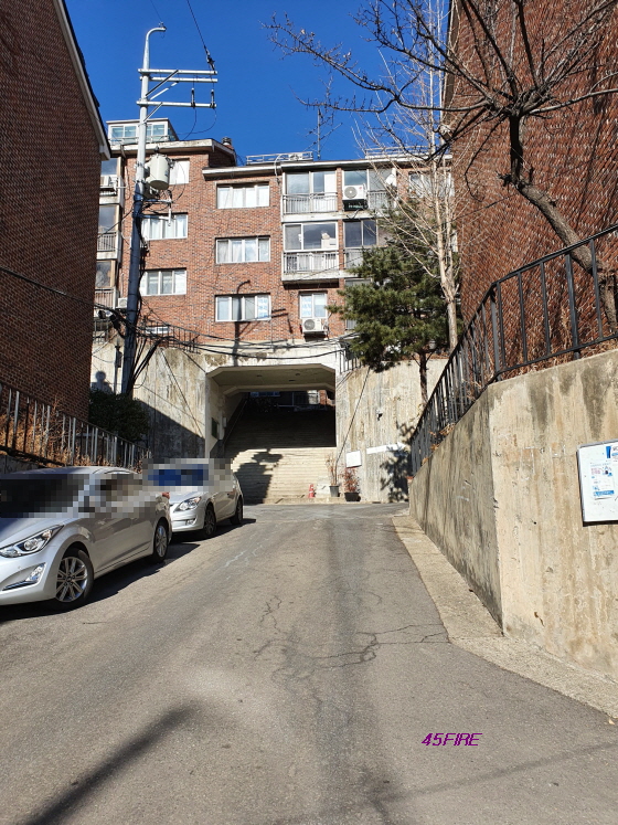 아까 올라갔던 골목에는 일반 매매로 거래된 주택들이 있었던 골목이고, 이 골목에 경매로 나온 주택이 있다.