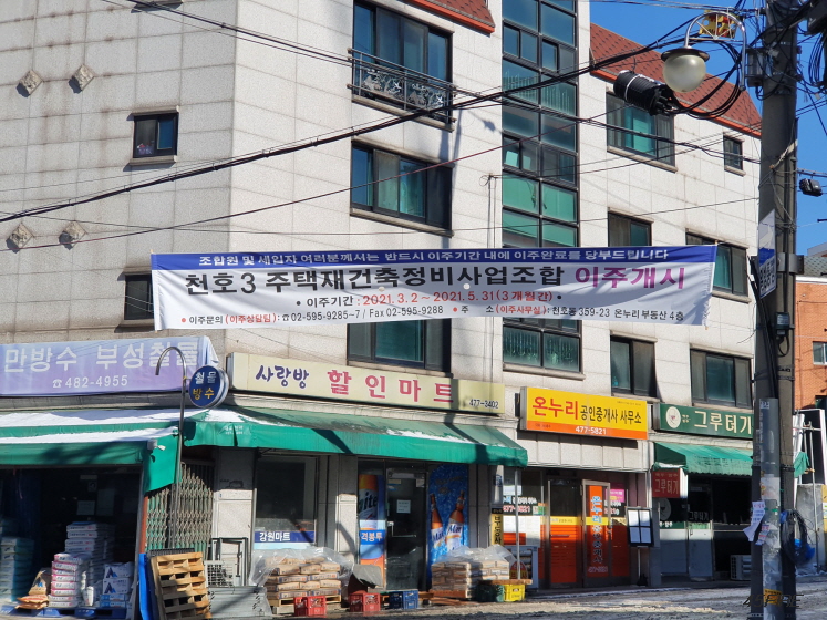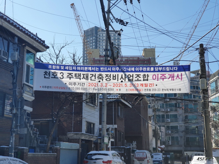 천호3구역 이주개시 현수막