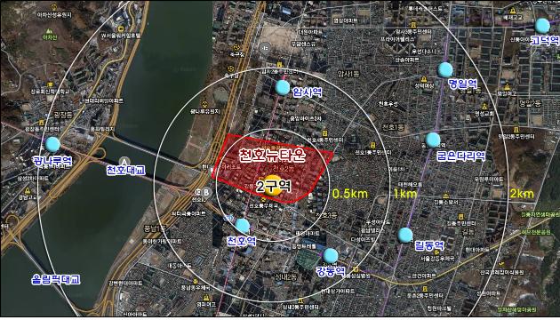 역시 천호뉴타운에 속하는 천호2구역의 위치도이다.