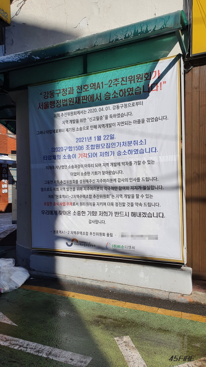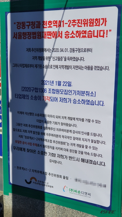 천호역A1-2 지역주탭조합 추진위원회가 서울행정법원 재판에서 승소했다고 한다.
