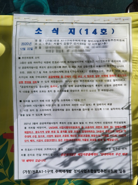 (가칭)천호A1-1구역 주택재개발 정비사업조합설립추진위원회 소식지