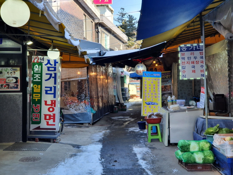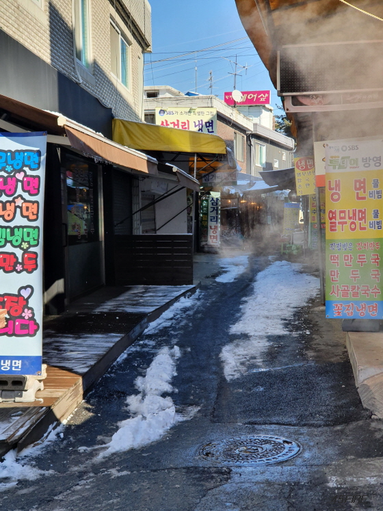 이때가 점심시간 무렵이었는데 추워서 냉면 생각은 전혀 안 났다.