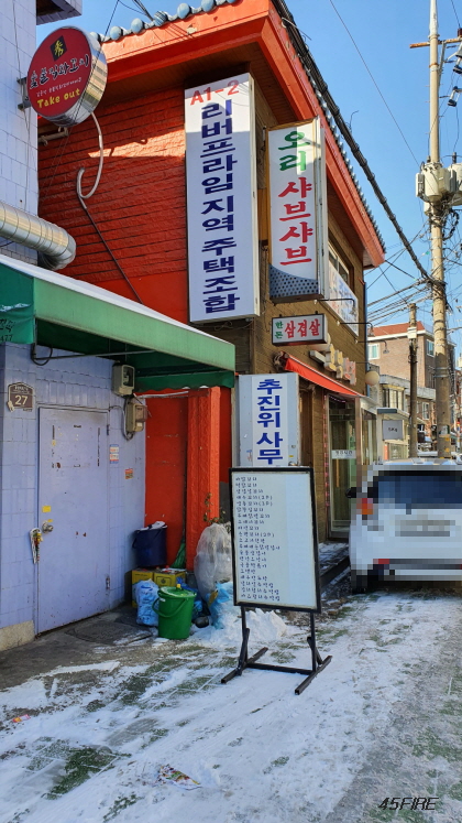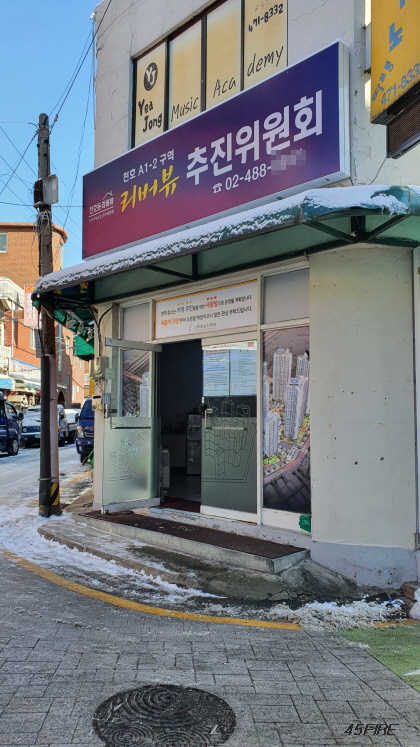 바로 천호뉴타운의 천호3구역으로 가지 않고 천호역 북서측을 먼저 둘러봤다. 천호역 2번 출구로 나와서 골목으로 들어가서 조금 걸어가자 천호A1-2 특별계획구역 지역주택조합 추진위원회 모습이 보였다.