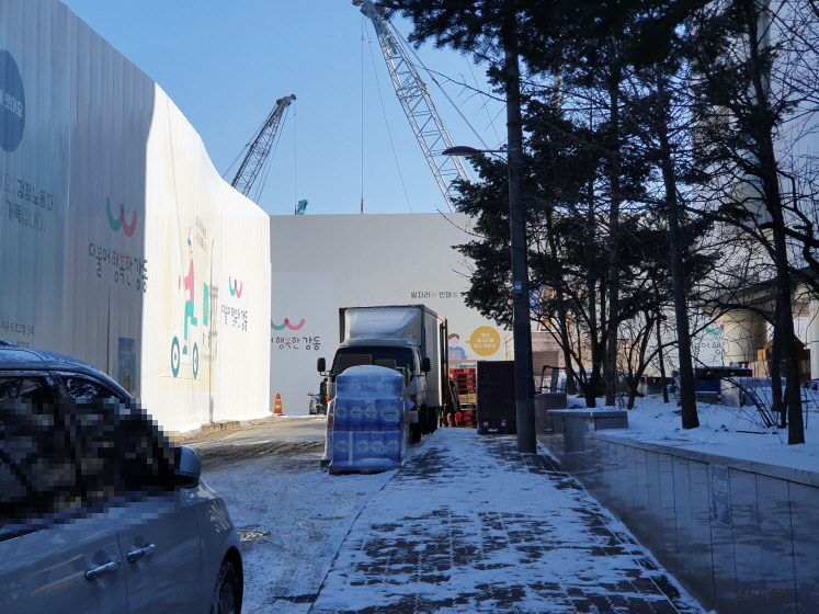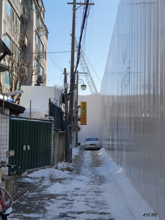 왼쪽은 이주개시 현수막 안쪽이기는 하다.