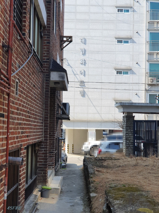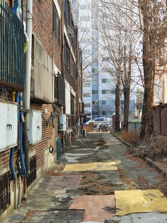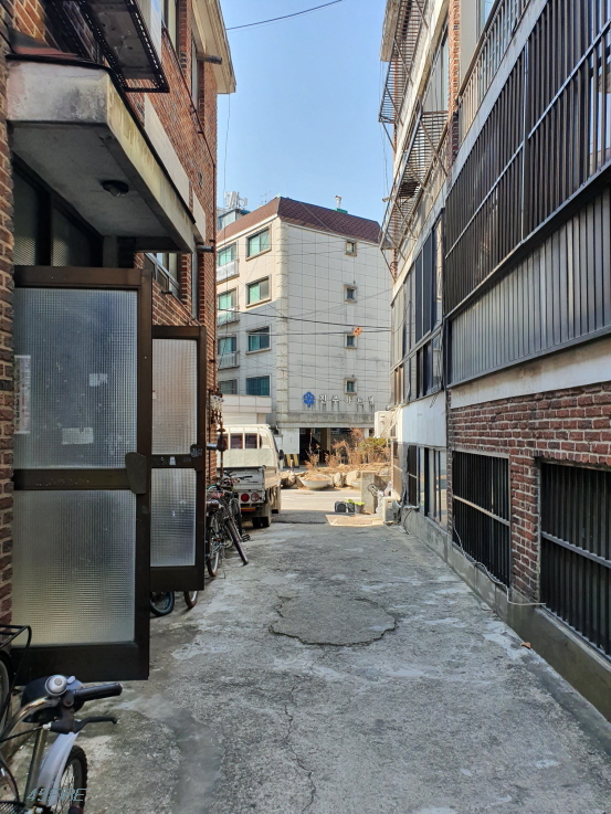 두 동 사이의 공간이다. 주차는 어려울 것 같은 폭이다.