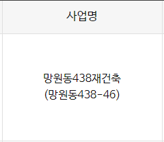 현재 마포구청 홈페이지에서 확인되는 망원동의 유일한 재건축이다. 가로주택정비사업에 대한 내용도 어딘가 있을 것 같은데, 자세히 찾아보진 않았다.