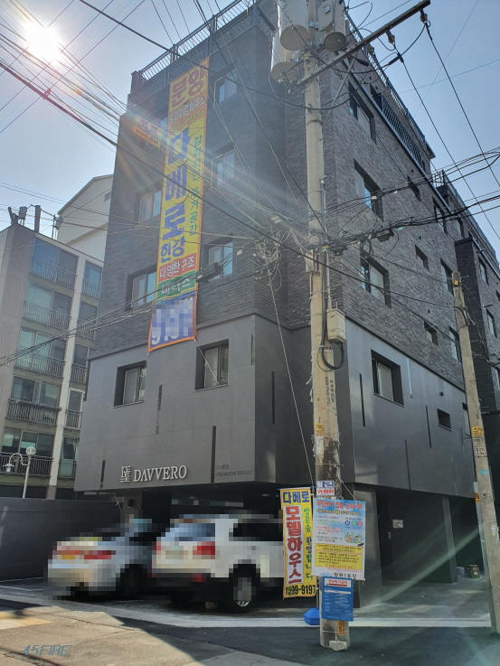 근처 도로 건너편으로는 신축 건물이 있었다. 1층에는 미용실, 카페 등이 있었다.
