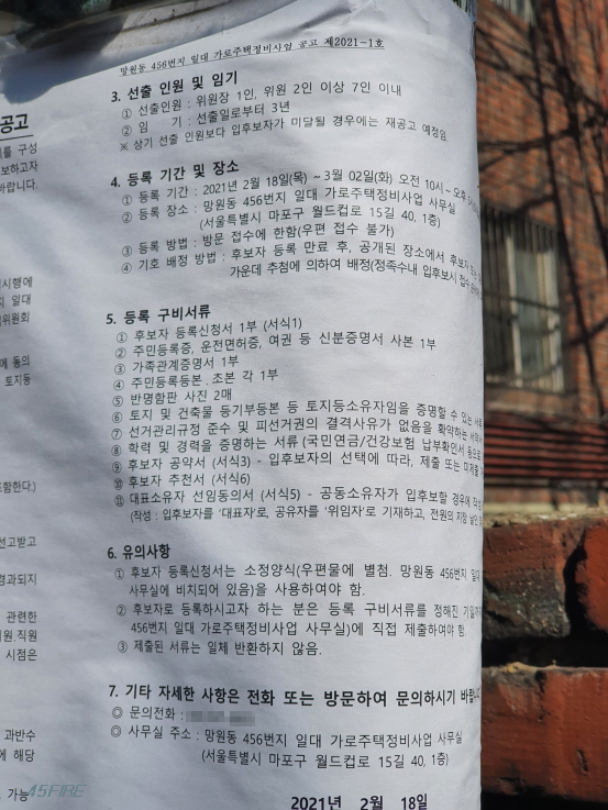 위원장 및 위원을 선출하기 위한 절차였다. 시간이 있었다면 가로주택정비사업 사무실도 방문하여 정확한 구역과 현황을 알아볼 수 있었을텐데... 사무실에 망원역 쪽으로 좀 떨어져 있었다.