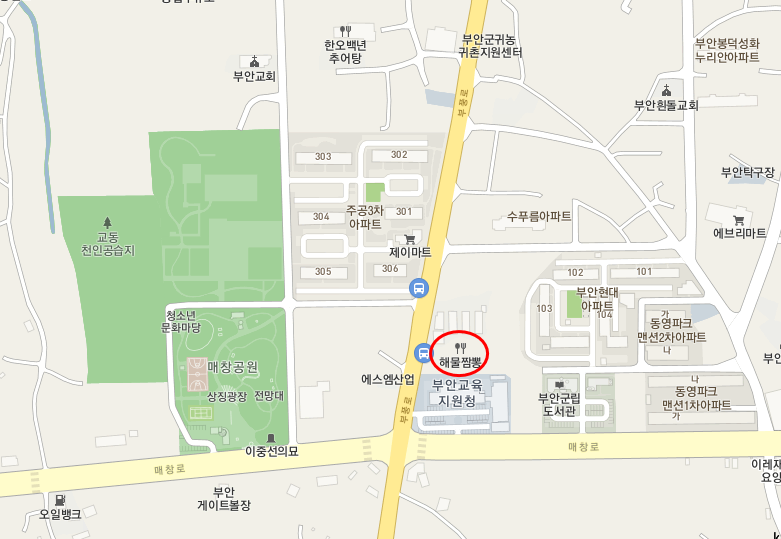 부안상설시장에서 주산식당을 지나 아래로 더 내려오면 있다.
