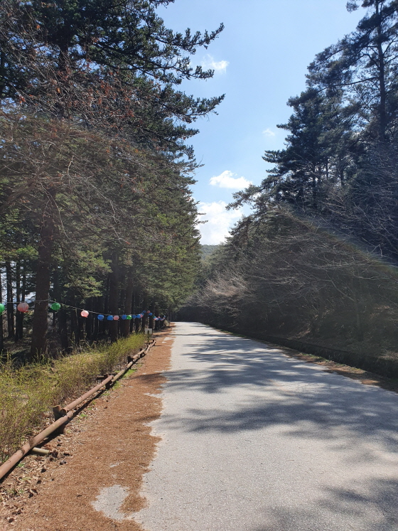 코로나 때문에 마스크를 쓰고 생활하니 전나무 숲길의 냄새도 느낄 수가 없었다.
