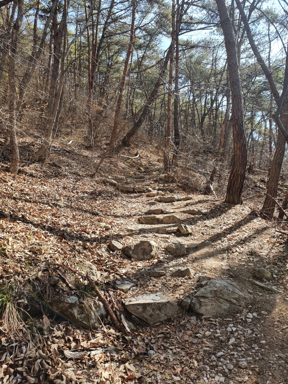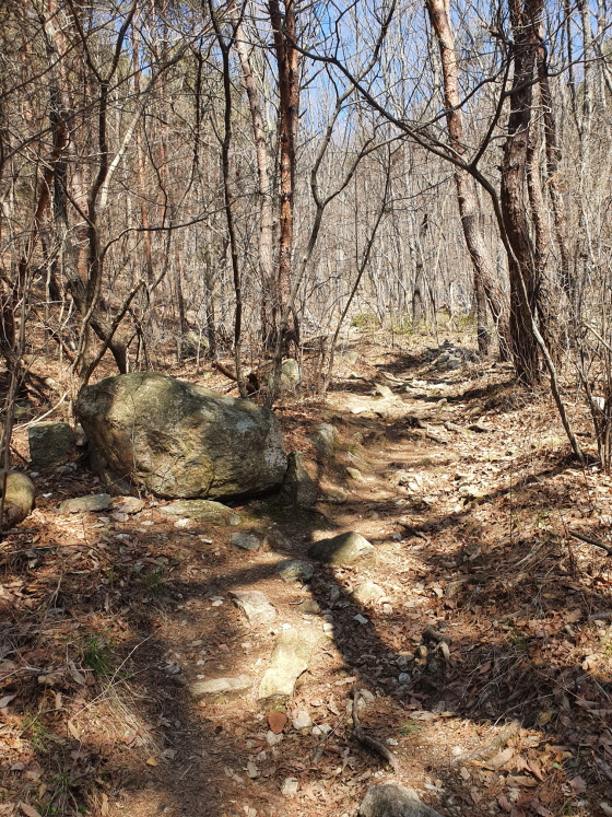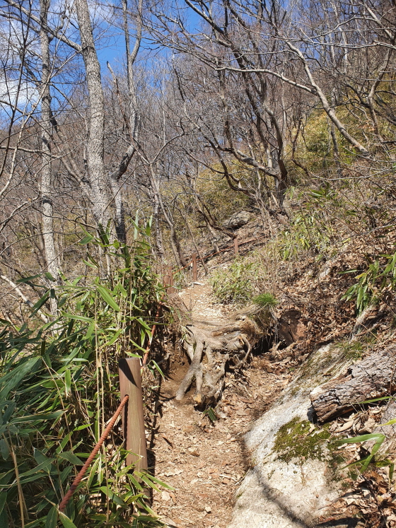여기서 더 가면 다른 쪽으로 내려오는 등산로가 있는 듯했는데 차가 주차장에 있어서 그대로 다시 내려올 수 밖에 없었다.