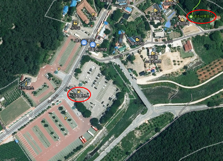 내소사를 찍고 갔는지 정확히 기억이 안 나는데, 가다보면 주차장 입구가 나온다. 위 지도에서 전기차충전소라고 표시한 곳이다. 주차를 하고 매표소에서 표를 사서 들어가면 된다. 내소사 전나무숲길을 지나서 내소사까지 가게 된다.