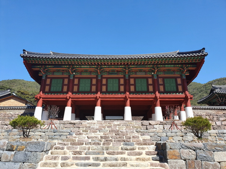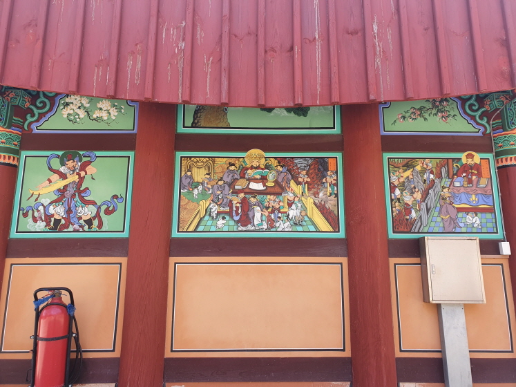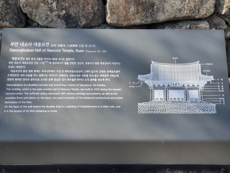 아는 만큼 보인다는 말이 있듯이 이번 여행에서 사찰의 구조를 설명한 안내를 봤다. 일단 입구에 있는 문을 지나서 이런 사대천왕이 있는 문을 또 지나고 대웅전까지 가게 된다. 모든 절이 이런 구조인지는 모르겠지만 다음에 방문한 개암사에서도 사대천왕이 있는 문을 지나갔다.