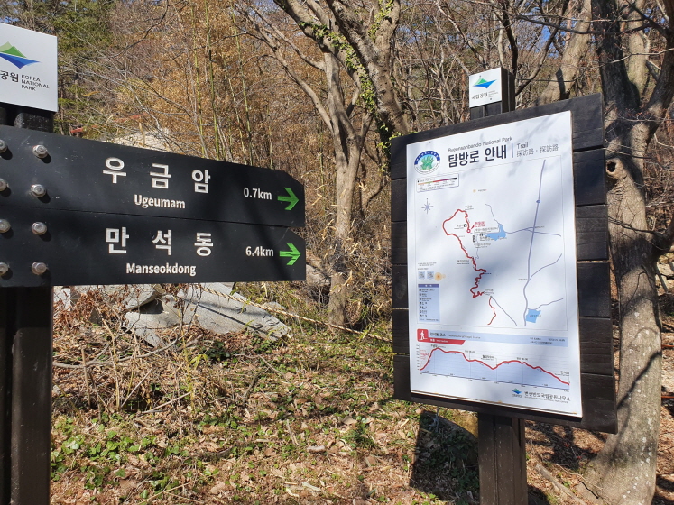 여기까지 왔는데 우금암을 안 보고 갈 수 없지. 0.8km? 한 10분에서 15분이면 가겠네.