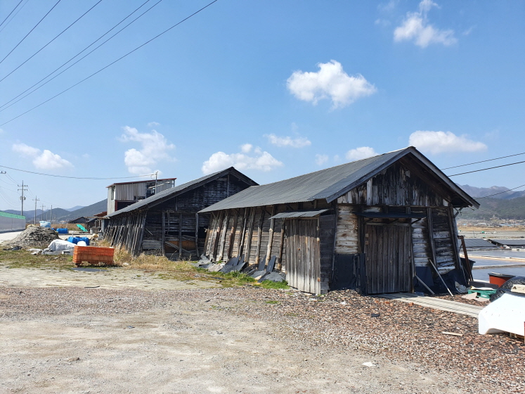 나무로 만든 소금 창고 같은데, 무너질 것 같았다.