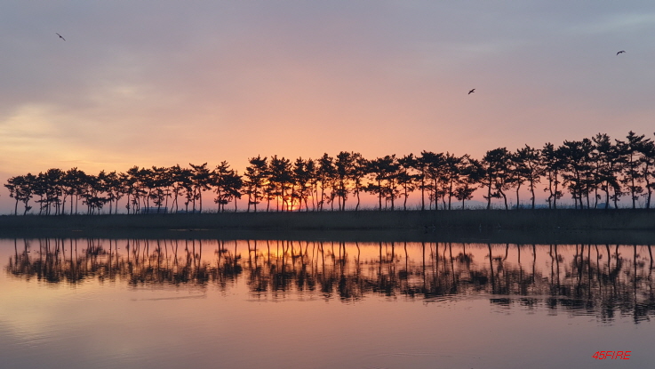 바닷물과 소나무 위로 떠오르는 일출을 볼 수 있는 곳이었다.