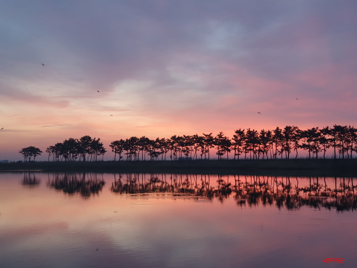 이번 새만금 여행(부안 - 변산반도 - 고군산 - 군산)에서는 일출을 볼 생각을 전혀 안 했다. 서해안이니까... 일출은 생각도 안 했고 일몰을 보는 것에도 별로 관심이 없었다. 그런데 여행을 준비하다가 위 사진과 비슷한 계화도 일출 사진을 보고 가지 않을 수 없었다.