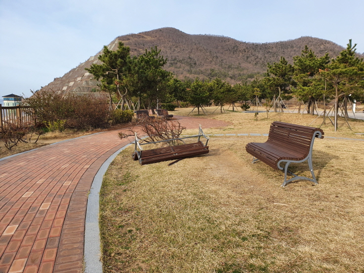 무슨 일인지 뒤집어진 벤치도 있었다.