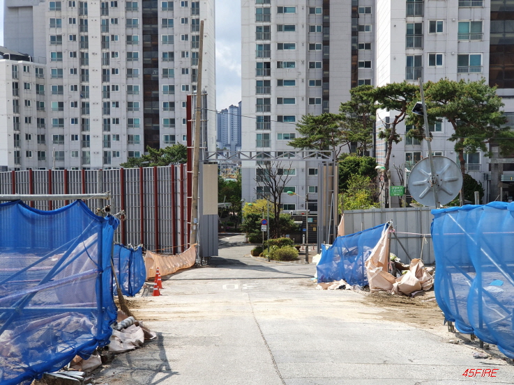 이쪽 도로에도 높은 펜스가 있었고, 아파트로 진입할 수 있는 공간도 있었다.