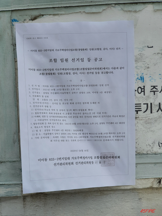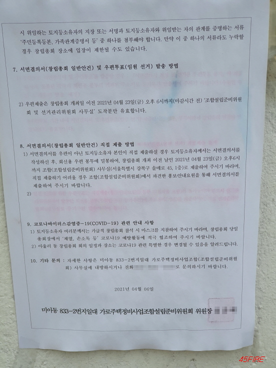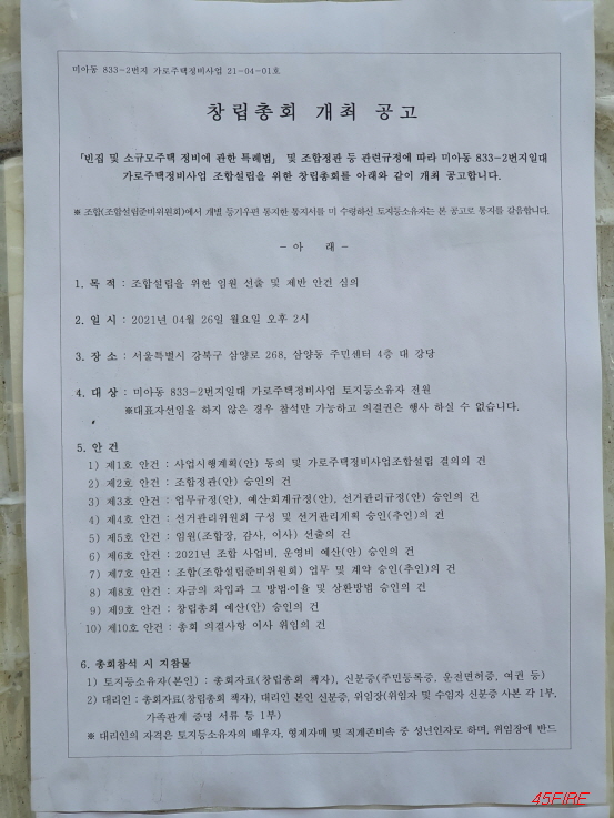 2021년 4월 26일에 조합설립을 위한 총회가 예정되어 있다.
