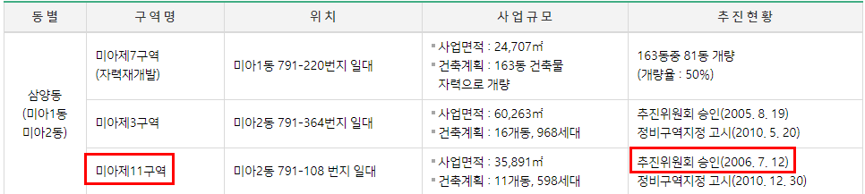결국 강북구청 홈페이지까지 찾아봤다. 미아11구역은 2006년에 추진위원회가 승인됐다.