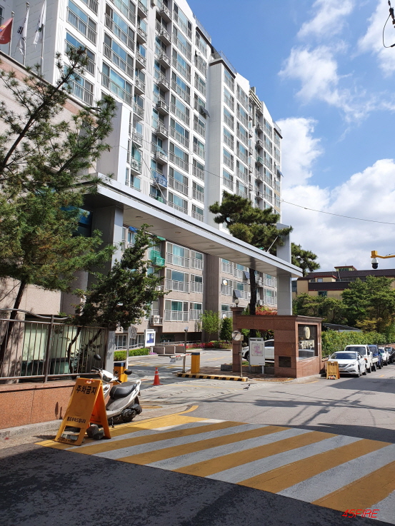그래도 가로방향으로도 경사는 심한 편이었다. 저 앞에 보이는 아파트는 벽산라이브파크 아파트다.