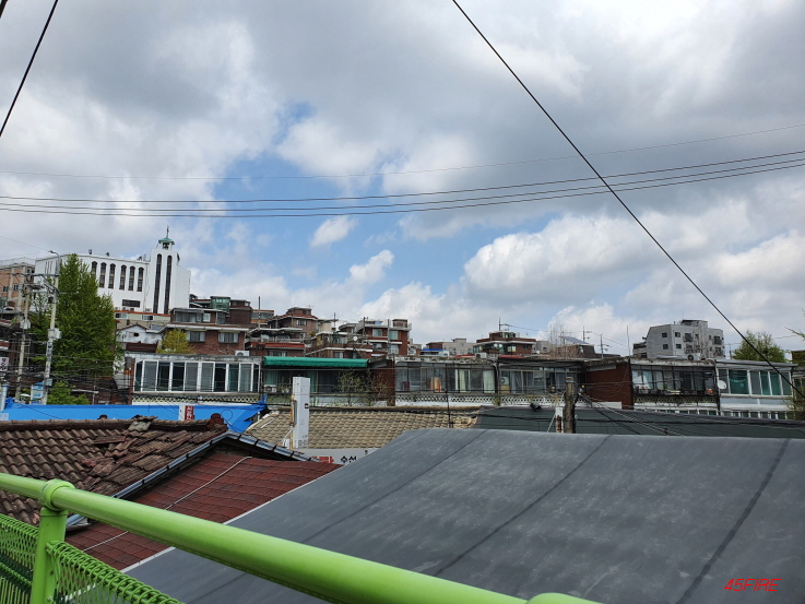 일심연립 단지 내에서 찍은 사진이다. 저쪽이 지대가 더 낮은지 지붕이 바로 보였다.