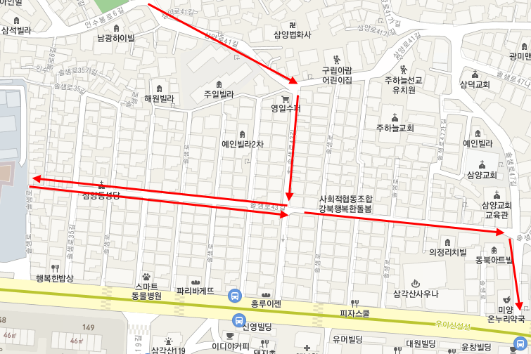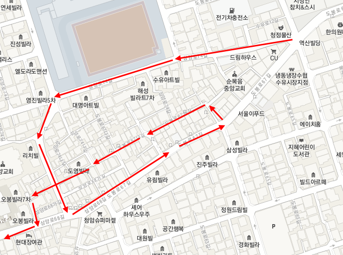 미아11구역 윗부분을 크게 돌고 내부를 가로 질러서 미아3구역으로 넘어갔다.