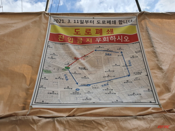 한 달 전에 폐쇄된 도로 안내문이다.