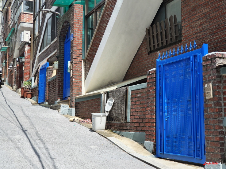 이 골목에 있는 집들은 대문이 파란색이었다.
