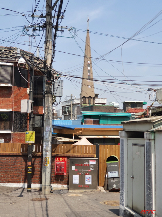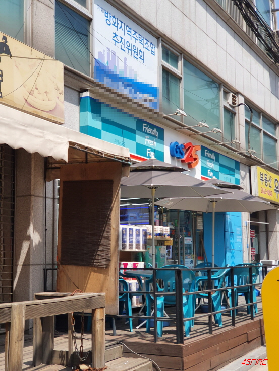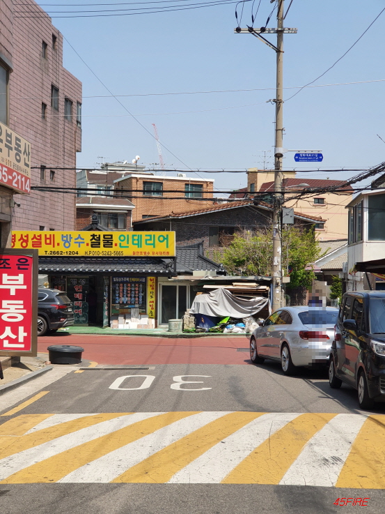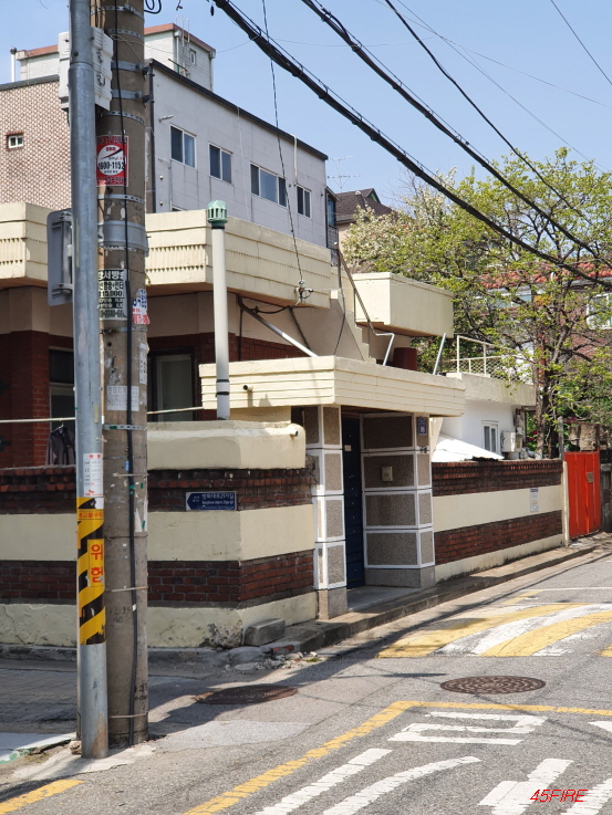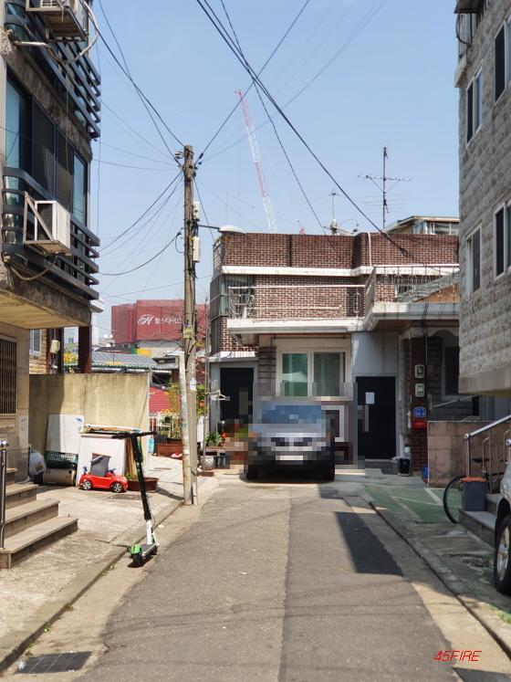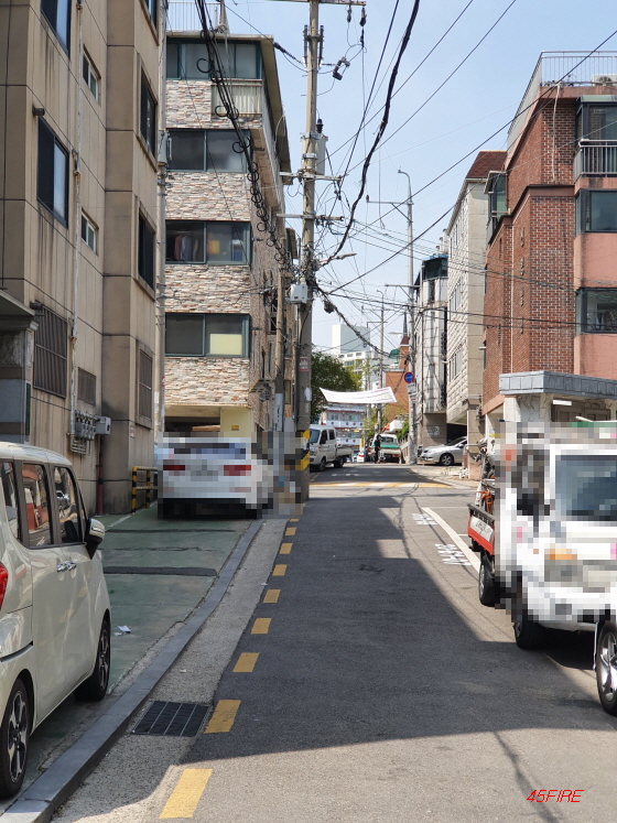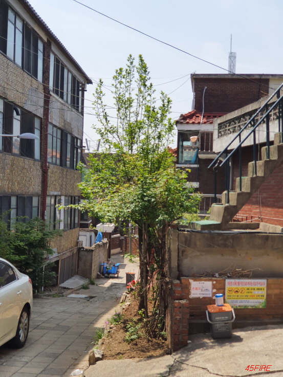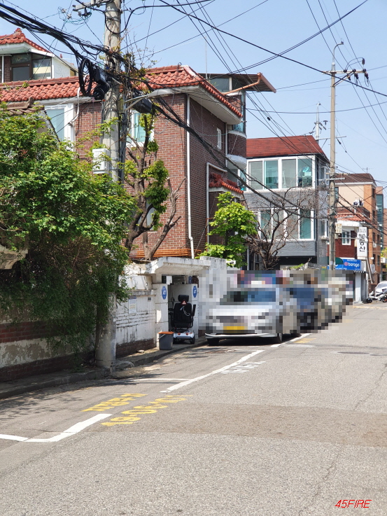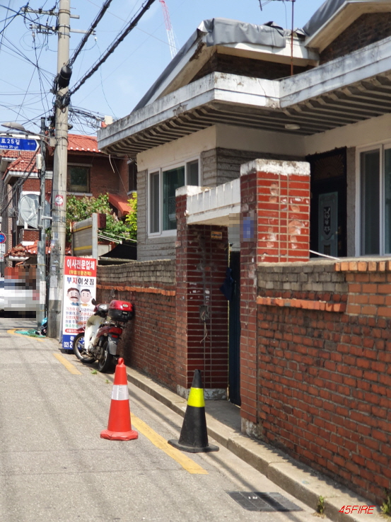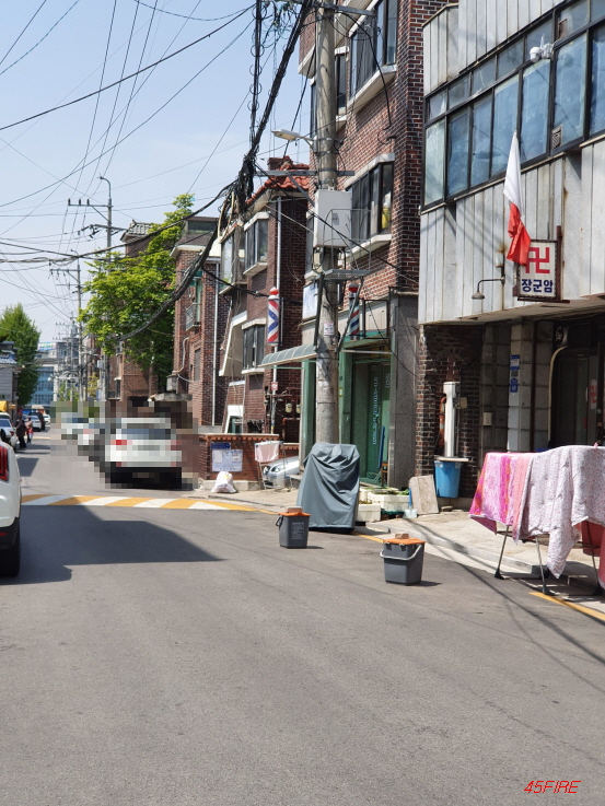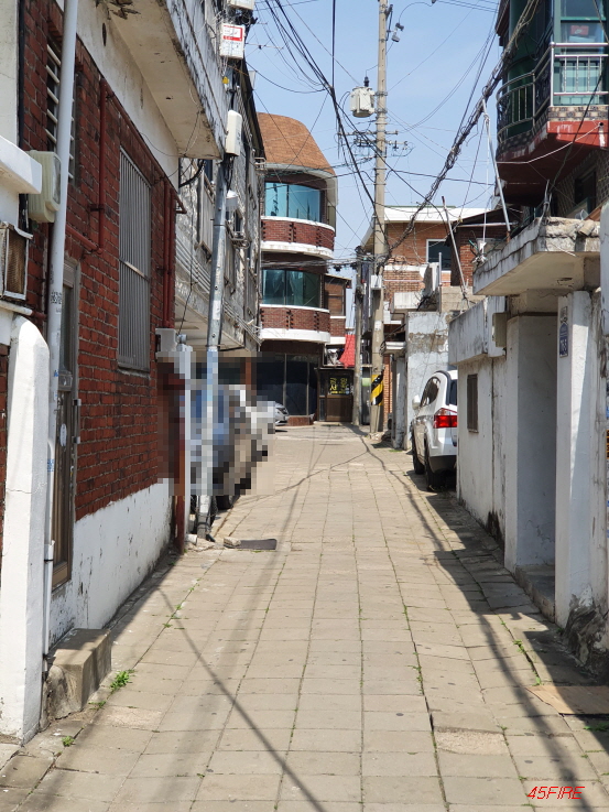 이렇게 도로가 좁으니 화재가 나도 소방차가 들어올 수 없다. 그래서 골목에 소화기가 보였다.