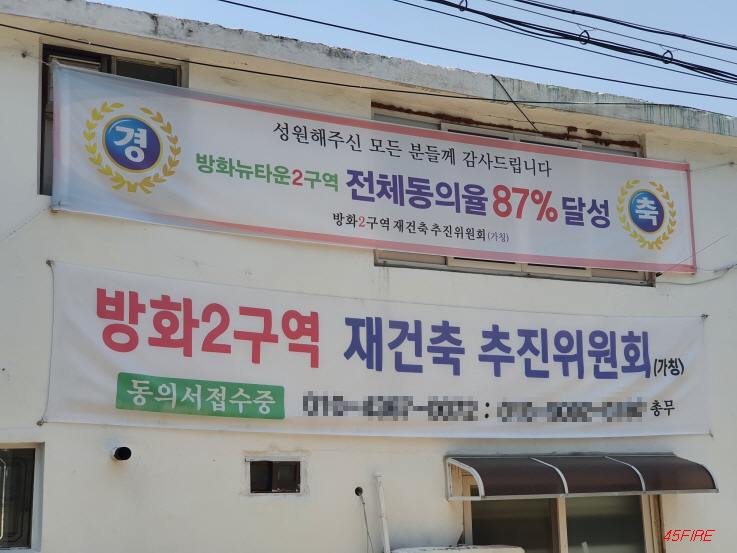동의율은 충족하는 것 같은데, 언제 붙은 현수막인지... 앞으로 방화2구역은 어떻게 될지 궁금하다.