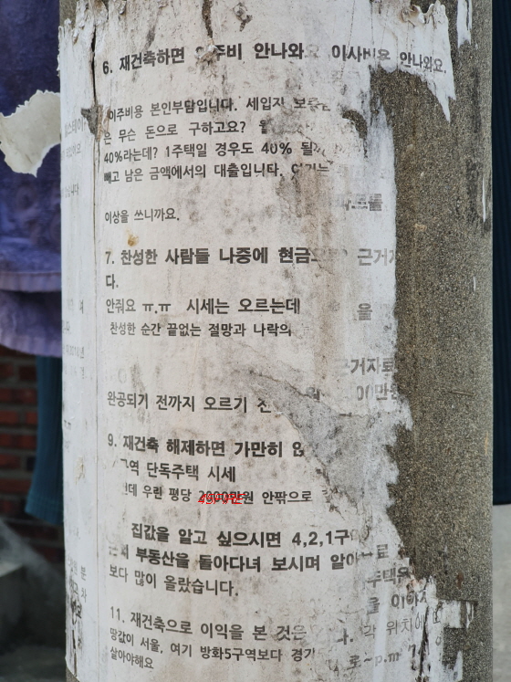 방화5구역에서는 재개발/재건축 반대의 흔적을 볼 수 있었다.