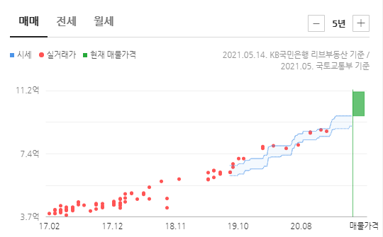 도대체 분양가가 얼마였던 것일까. 2017년 4억원 정도였는데 지금 호가는 11억이다. 이런 시세 흐름을 보면 그때 아무거나 샀어야 했다는 생각밖에 안 든다. 하지만 다 지난 일이다.
