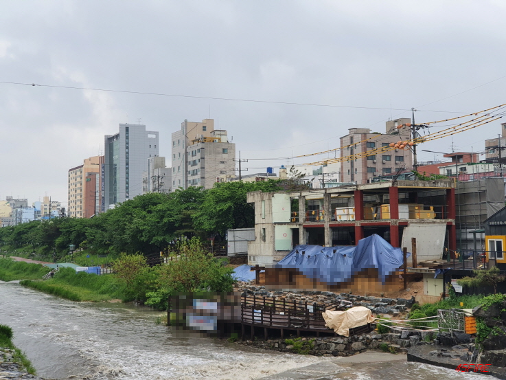 불광천에 딱 붙어서 무언가 공사 중이었다. 불광천뷰 카페가 생기는 것일까.