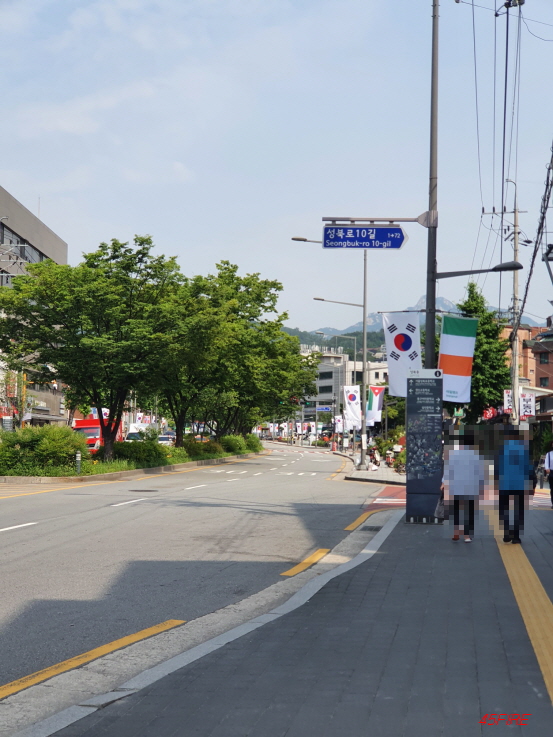 가는 길이라고 했지만 사실상 성북1구역 좌측으로 접한 도로이다. 이 도로를 따라 '성북동'으로 가면 대사관저들이 있는지 각국의 국기가 있었다.