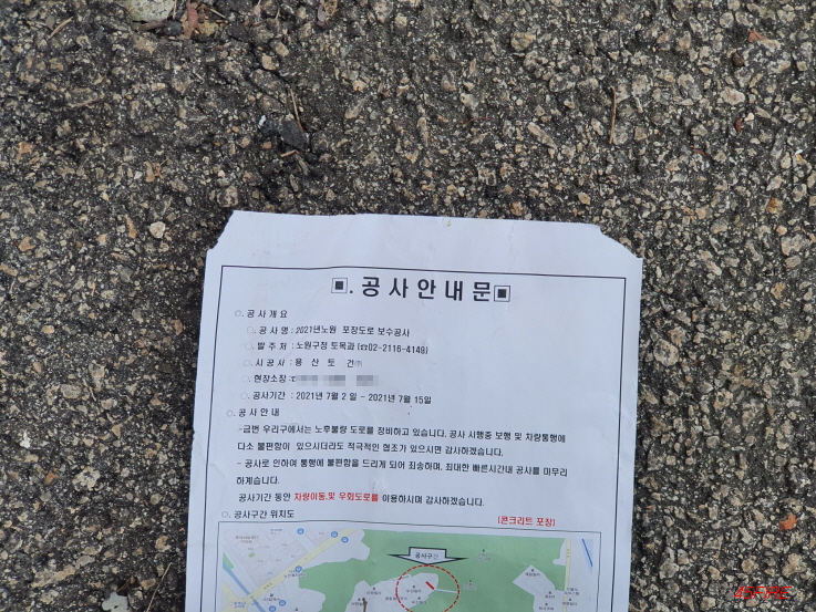 노후된 도로를 포장하는 공사가 진행 중이었다.