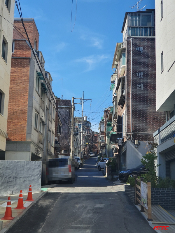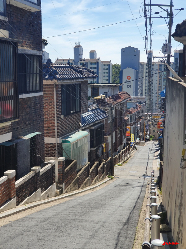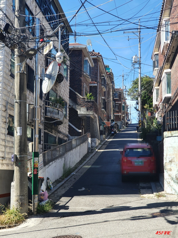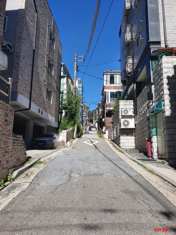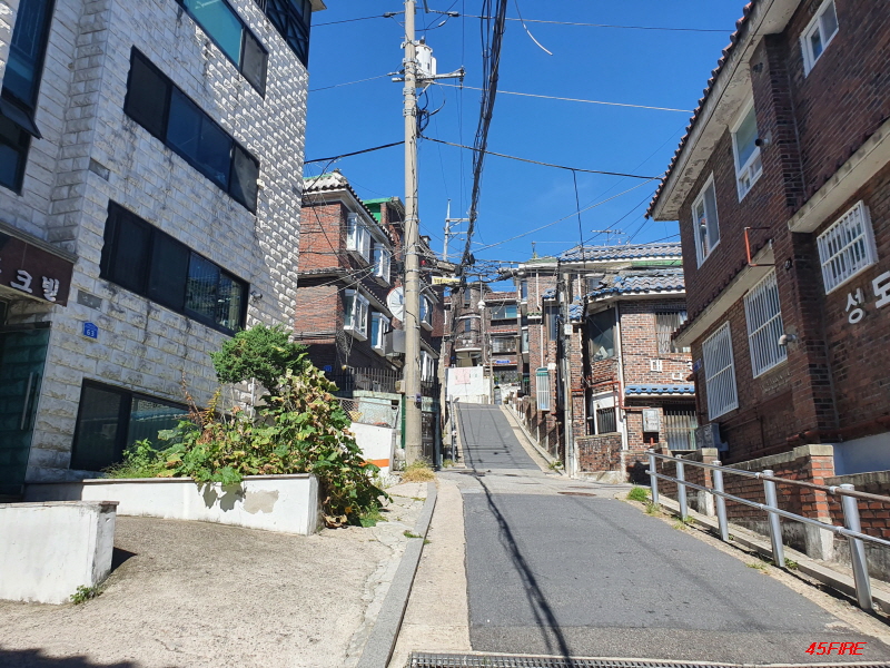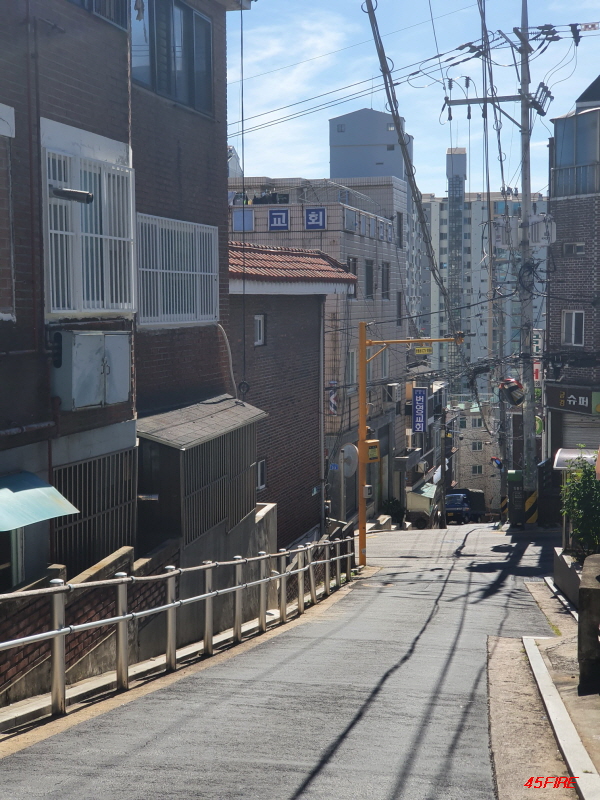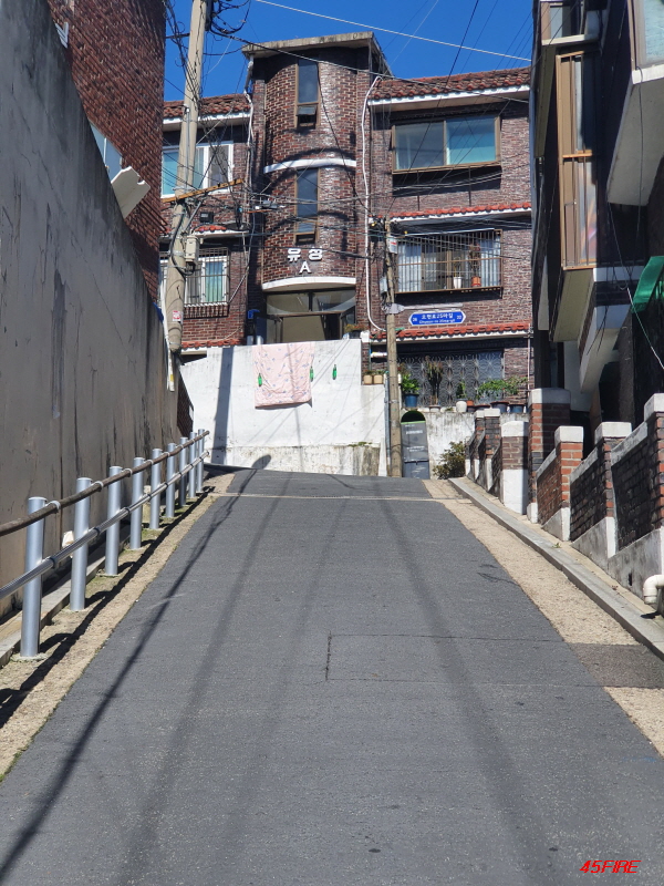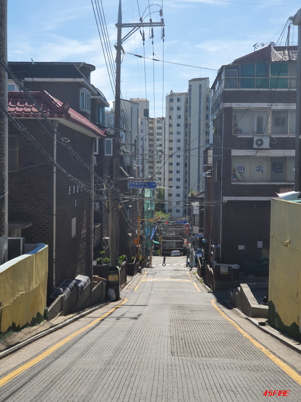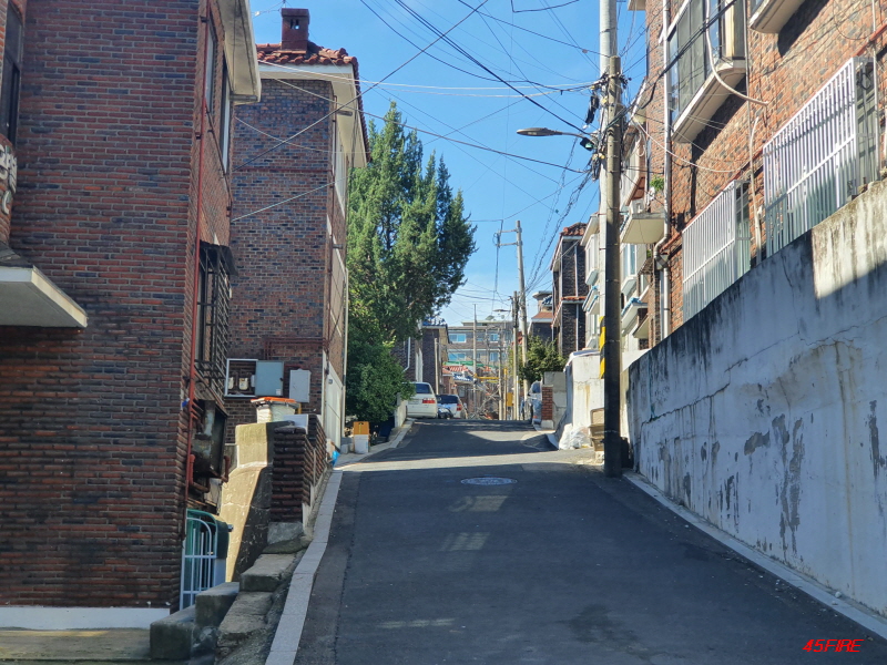 이쪽 방향도 언덕길입니다. 큰 도로에서 위쪽으로 가는 언덕길이 남북축이라면, 이쪽은 동서축 도로입니다.
