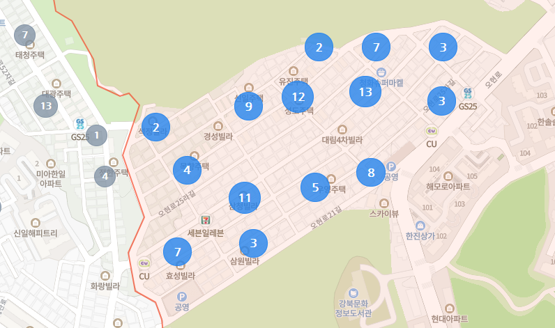 이쪽에는 신축 빌라가 거의 없었습니다.