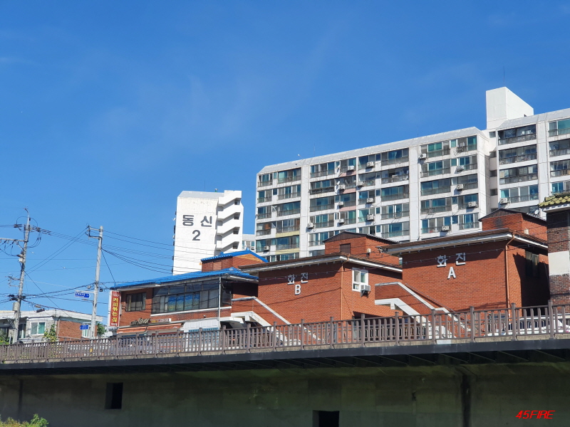 저 멀리 최근 실거래가 7억 4천 3백만 원(33평 기준)의 해모로 아파트가 보입니다. 길건너 아파트가 7억이라면 이쪽에 신축 아파트가 생기면 7억은 더 넘을 것 같습니다.