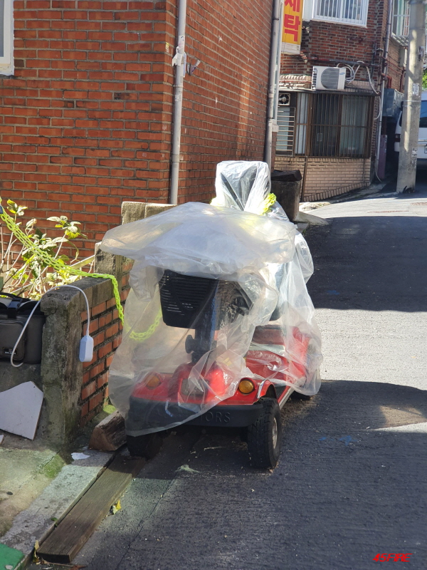 돌아다니는 사람들을 거의 못 봤는데, 이런 전동 휠체어의 주인은 재개발에 반대하지 않을까 하는 생각이 들었습니다.