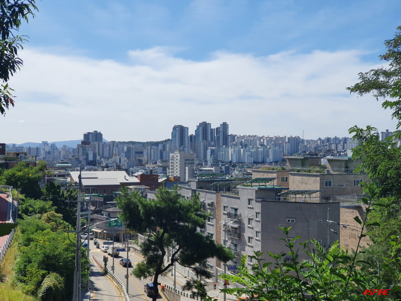 저 멀리 고층 아파트들이 많이 보이는데 어딘지 모르겠습니다.