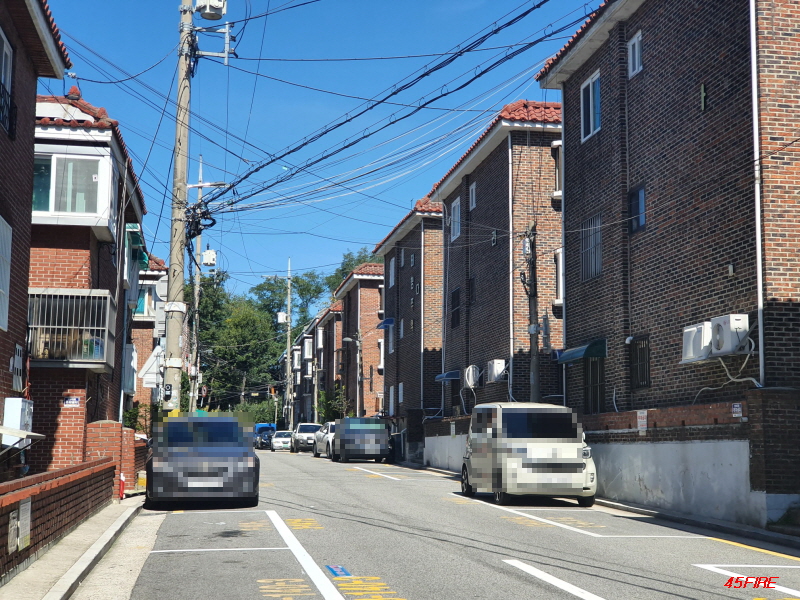 비슷하게 지은 빌라들이 나란히 있었습니다. 도로폭도 꽤 넓은 편이었습니다.