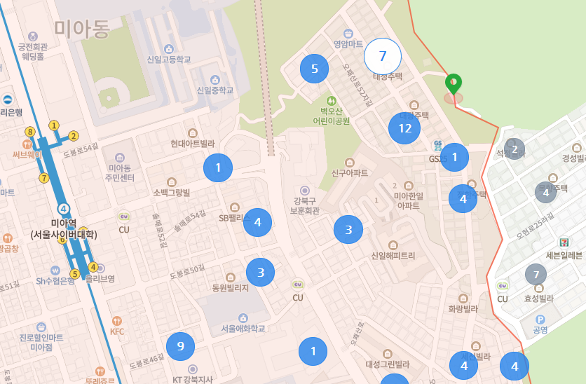 이렇게 미아동 258번지 일대와 미아역 주변, 미아3구역 주변까지 임장을 마쳤습니다. 다음에는 최근에 '역세권 활성화 사업'으로 언급된 삼양사거리역 근처에 가볼 생각입니다.