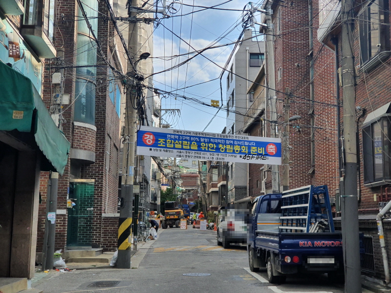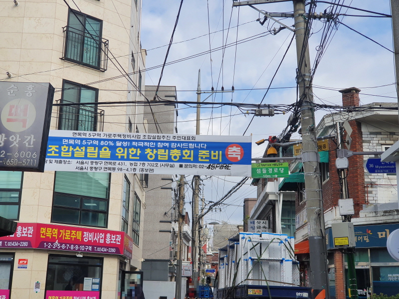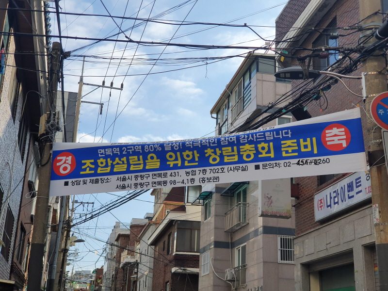 사전에 구역을 알고 왔던 것은 아니고 그냥 어떤 모습인가 살펴보려고 왔는데 면목역 가로주택정비사업 현수막이 보였습니다.