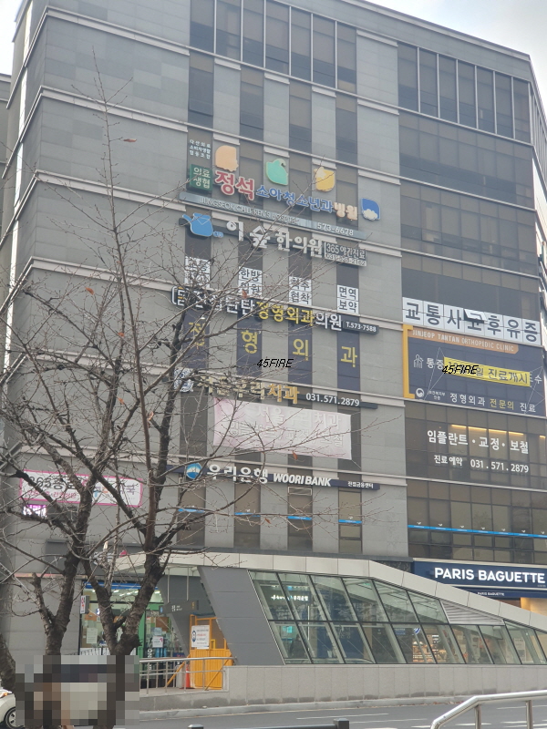 여기도 엠타워 맞은편에 있는 건물인데, 삼성프라자 바로 오른쪽으로 사거리 코너에 위치한 건물이다. 1층에 약국, 2층에 은행, 3층부터 병원인 아까 그 건물이다.