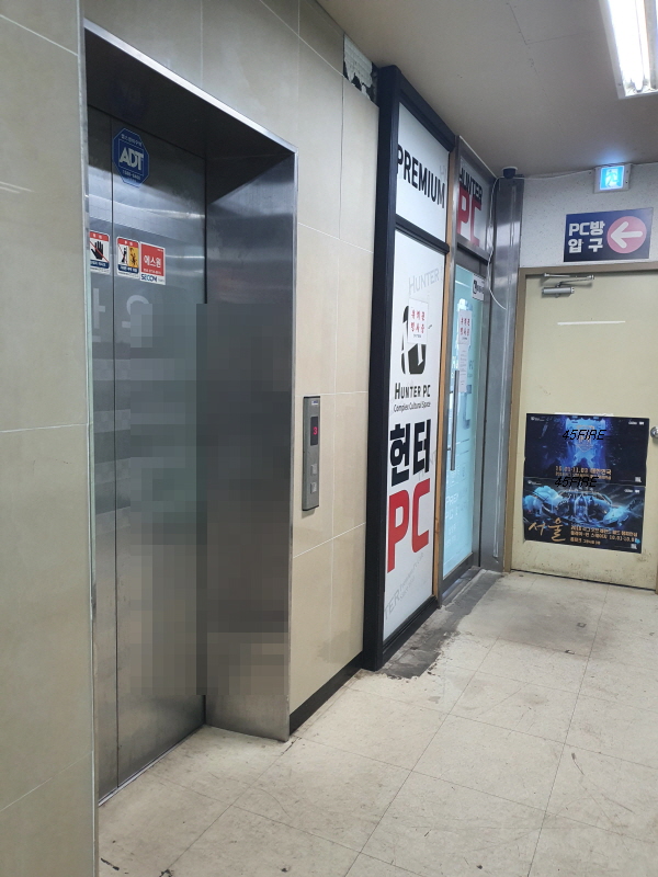 왼쪽으로 경매로 나온 3개 호실이 있고, 오른쪽은 성인게임장이 운영중이었다. 입구도 엘리베이터 바로 옆이다. 과거의 피씨방처럼 3개 호실을 통으로 임대를 주거나 나눠서 임대를 줄 수도 있겠다.