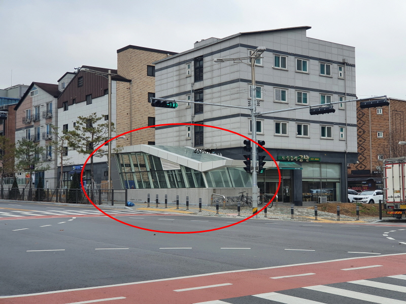 아쉽게도 단우타워 바로 앞으로 출구가 생기지 않았다. 출구는 엠타워 앞쪽으로 하나가 있고, 위 사진의 출구는 단우타워에서 길을 한 번 더 건너야 나오는 곳이다.