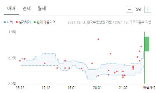 2019년 10월 준공으로 총 2개동, 298세대다. 다양한 평형이 있다. 아실에서는 3억 2700만원에 거래된 것으로 나오는데, 30평대를 찾아봐도 그 실거래가 안 나온다. 아직 반영이 안 된 것인지, 아무튼 84제곱미터는 3억 초중반대로 매물이 올라와 있다.