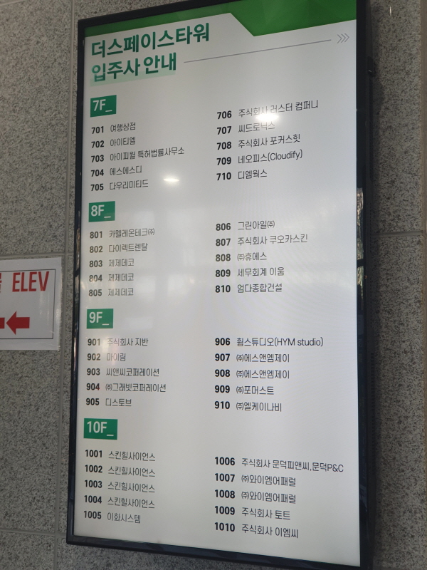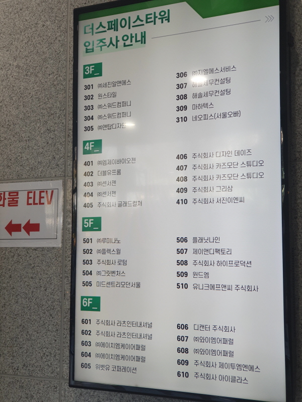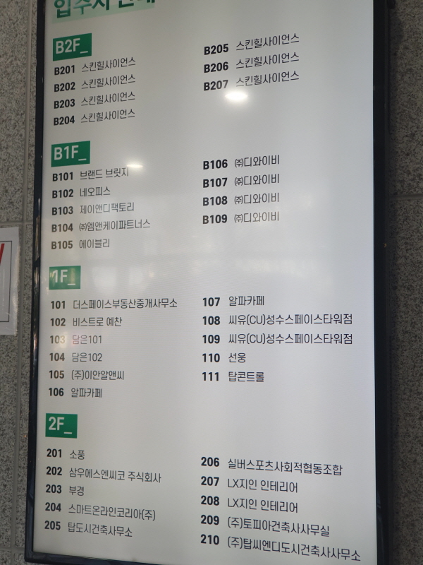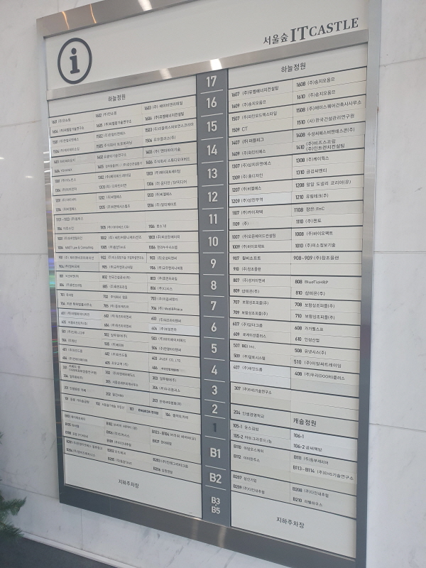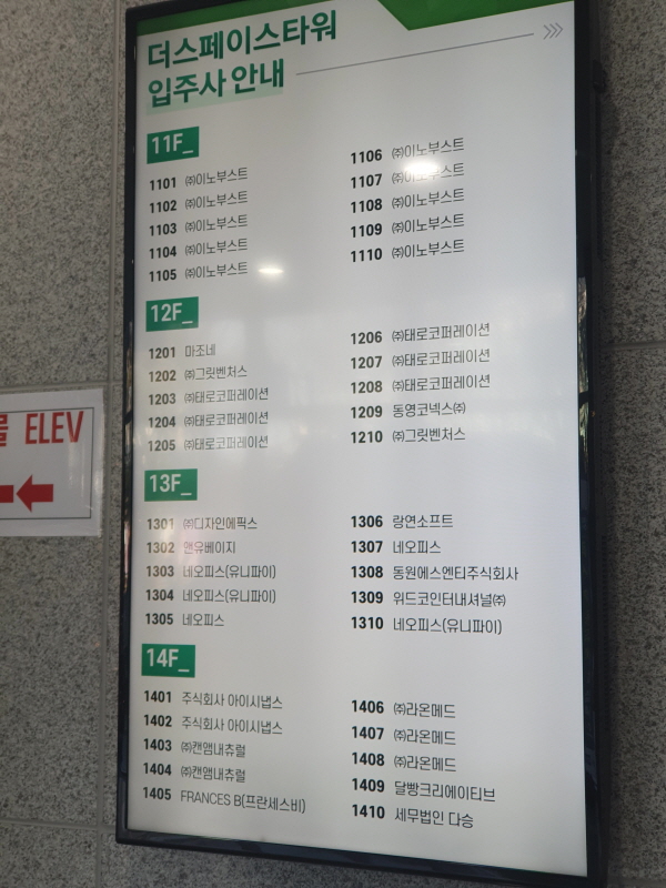 1층 로비에 있는 입주현황판이다. 공실이 거의 없어 보였다.